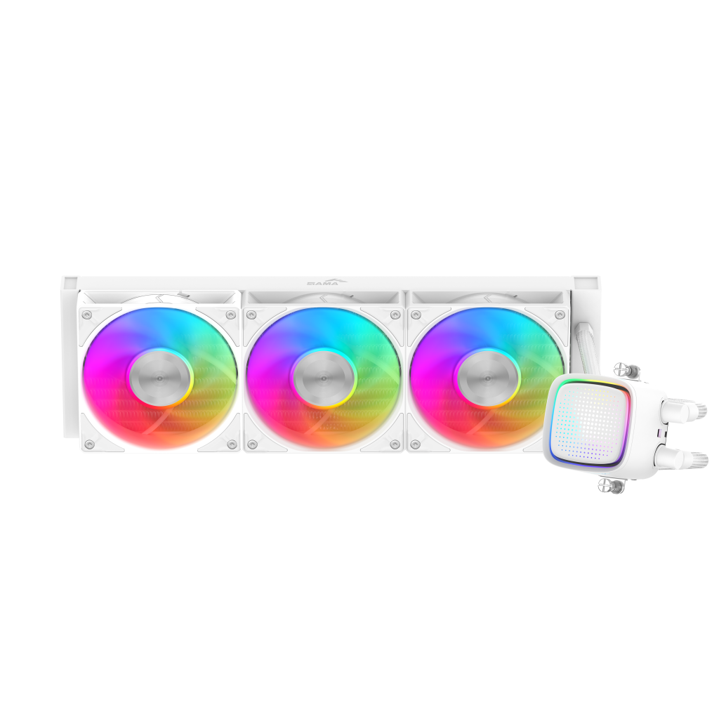 Introducing the SAMA L50 AIO: equipped with a self-developed high-performance pump and 28mm-thick fans for exceptional cooling. Its dot-matrix water block with infinity mirror effect delivers stunning ARGB lighting—blending high-level performance with bold aesthetics.