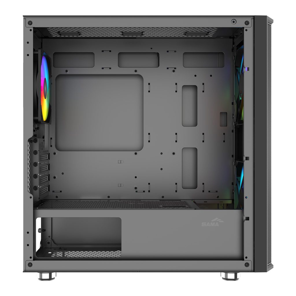 The S30 is a compact M-ATX case supporting 350mm GPUs, 166mm CPU coolers, and a 280mm top radiator. Its high-airflow mesh front and three PWM ARGB fans provide strong cooling, while triple dust filters keep your build clean.