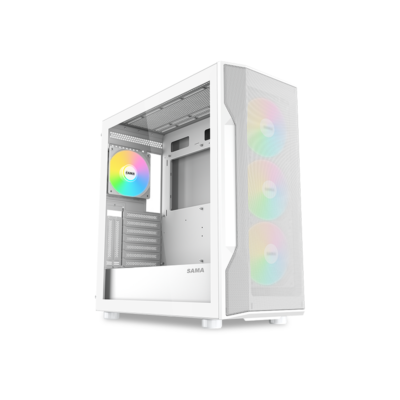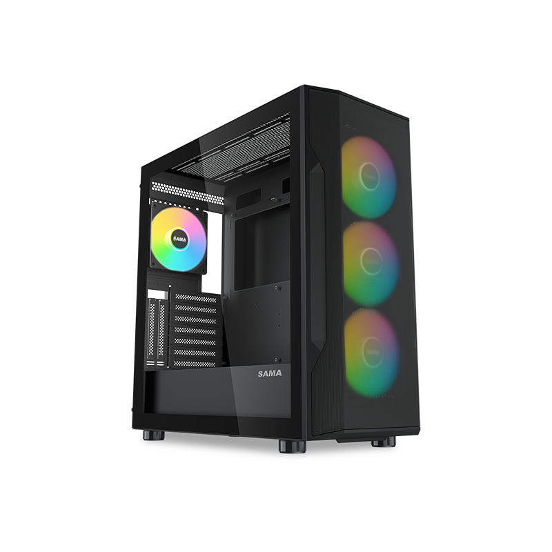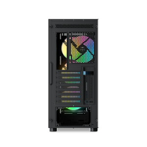 Корпус оснащен сетчатой передней панелью, четырьмя предустановленными высокопроизводительными вентиляторами ARGB и обеспечивает мощное охлаждение и потрясающие световые эффекты. Такое сочетание эффективности и стиля, наряду с широкой совместимостью, даёт исключительный пользовательский опыт, что делает его идеальным для пользователей, которым нужны как функциональность, так и внешняя привлекательность своего ПК.