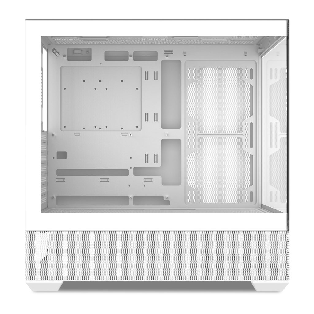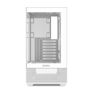 The SAMA V40E case boasts dual tempered glass panels, offering a stunning 270° panoramic view that beautifully displays the interior components of your build.