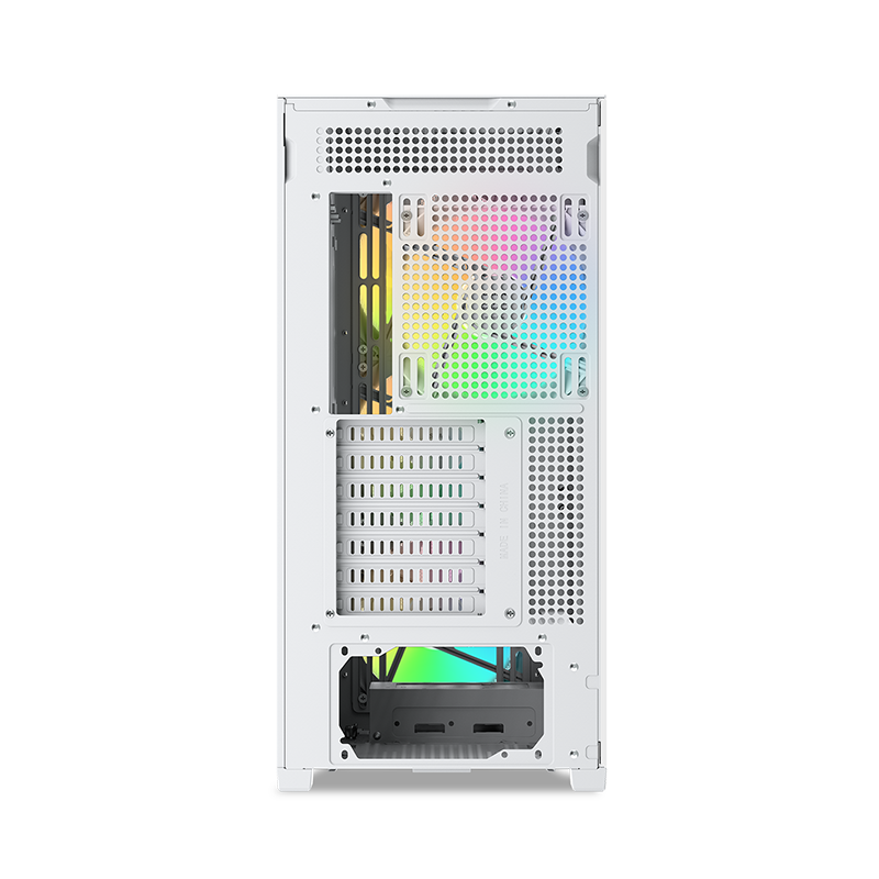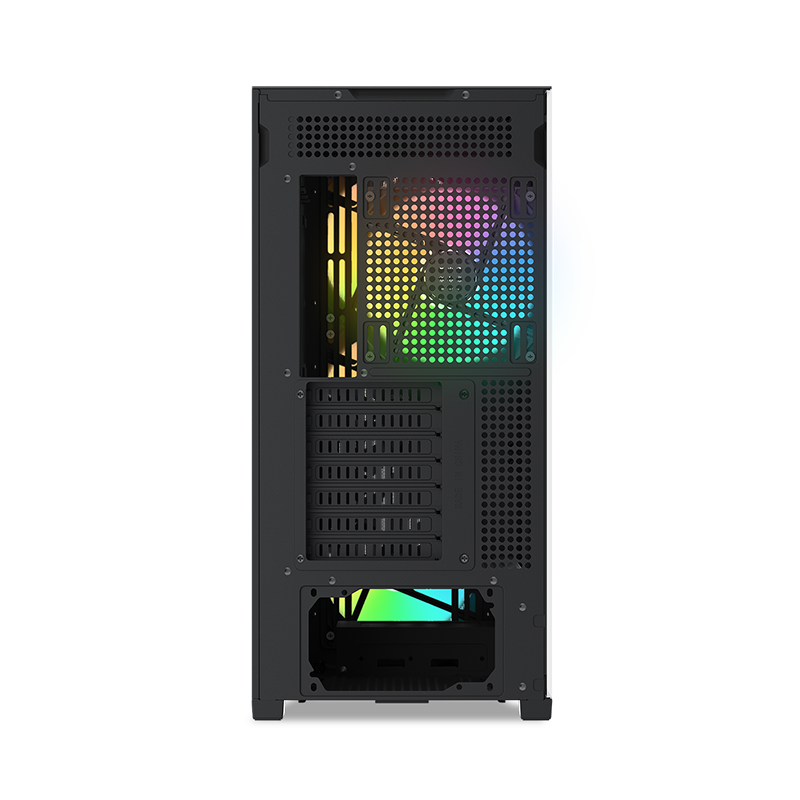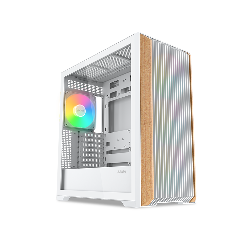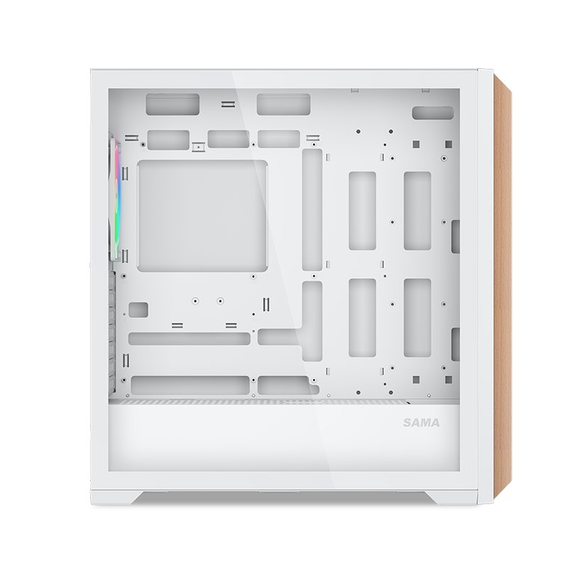 SAMA Z60 поставляется с предустановленными четырьмя 140-миллиметровыми ШИМ-вентиляторами с ARGB подсветкой: 3 спереди и 1 сзади. Таким образом, корпус обладает высокой эффективностью охлаждения сразу “из коробки”